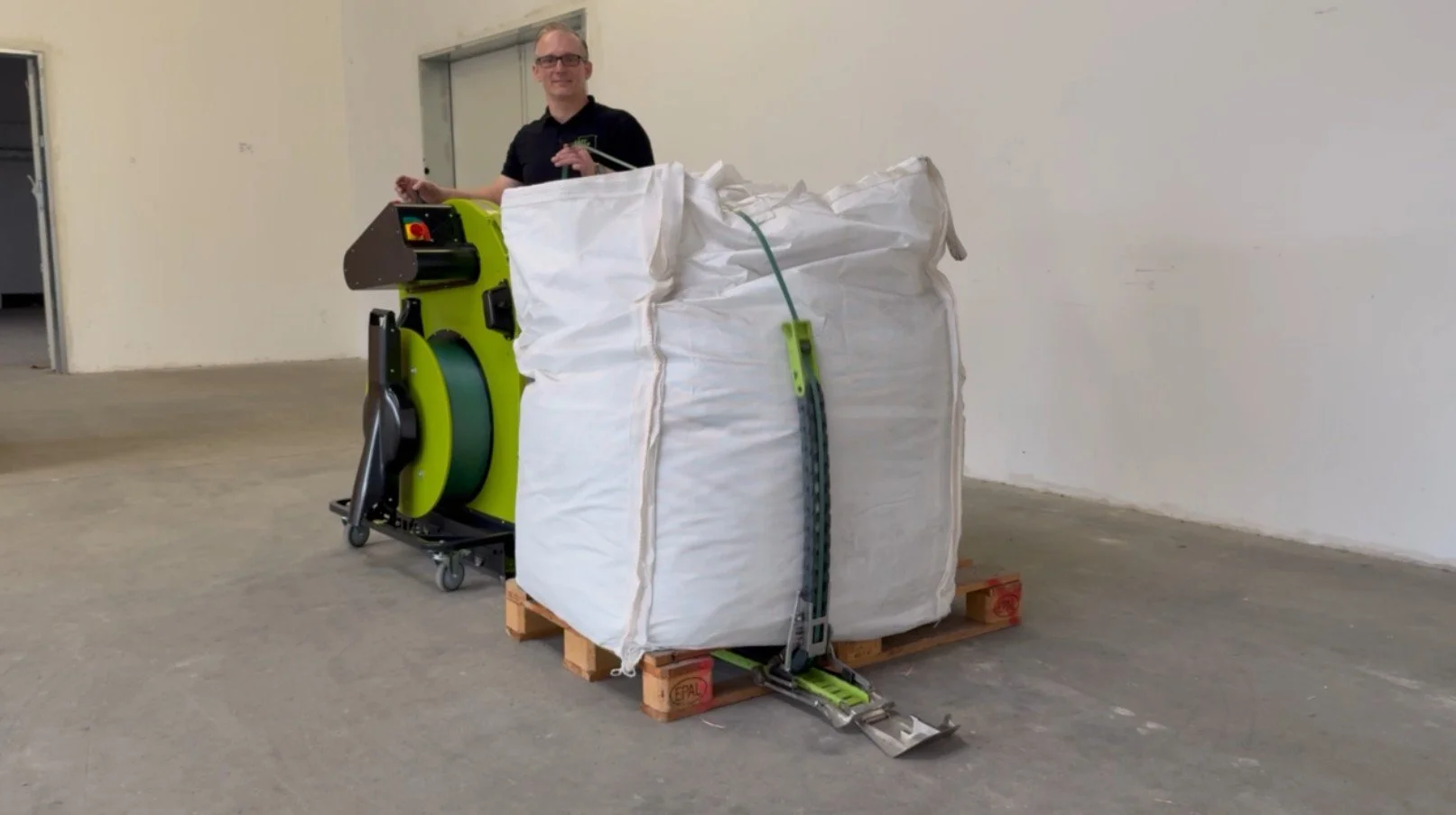 Mit EasyStrap kann Packgut bis zu einer Höhe von 2,70m und eine Breite von 2,30m einfach und rückenschonend auf z.B. Euro-, Einweg und CHEP-Paletten gesichert werden.